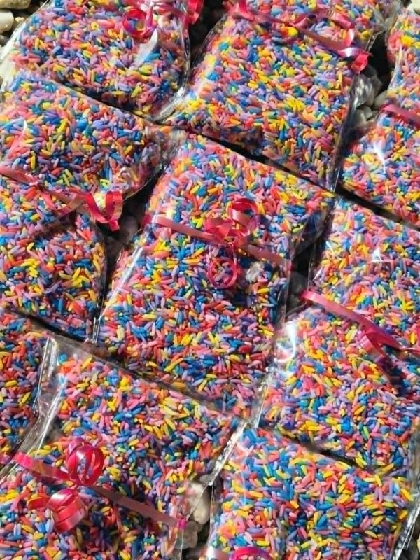 Each rice sachet sparkles with glitter and is Lavender scented.